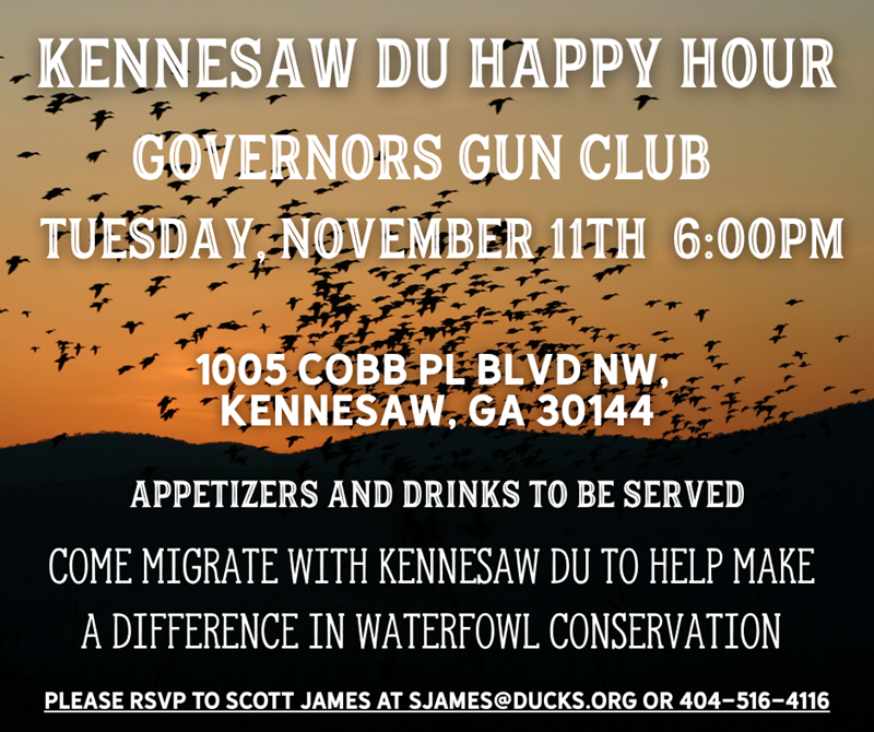 We will be talking about what Ducks Unlimited is doing in our State and across the continent. Our Georgia volunteer numbers are growing strong and we want you to be a part of this great conservation effort.