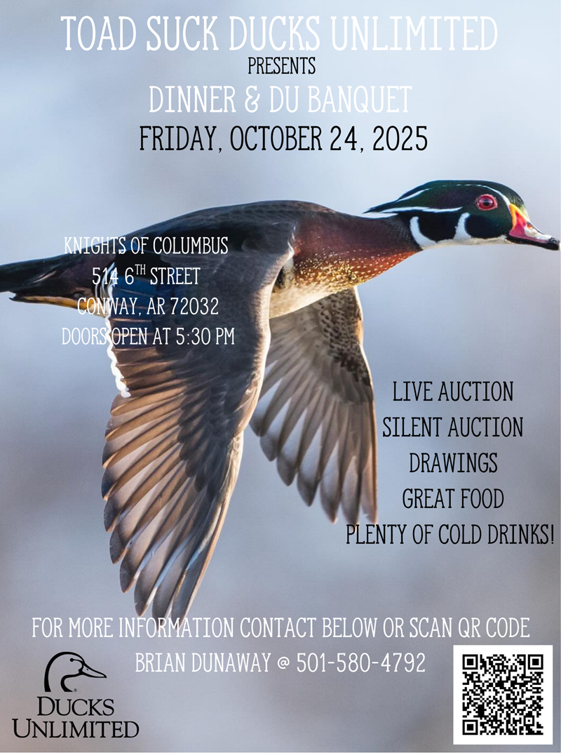 Wood Duck Sponsor Table ($1500) - Great Gun Table! Includes reserved seating for 8 people at the event, one 2025 DU Bronze Sponsor package for the buyer, 7 annual DU memberships, and your choice of 1 item from the DU Great Gun & Gear Banner! Scan QR code below for a current list of items available.