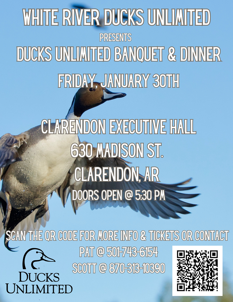Wood Duck Sponsor Table ($1500) - Great Gun Table! Includes reserved seating for 8 people at the event, one 2026 DU Bronze Sponsor package for the buyer, 7 annual DU memberships, and your choice of 1 item from the DU Great Gun & Gear Banner! Scan QR code below for a current list of items available.